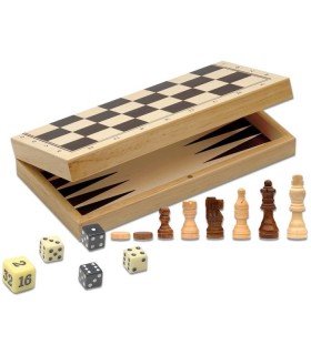 • 3 Giochi Riuniti - Scacchi, Dama e Backgammon in Legno
