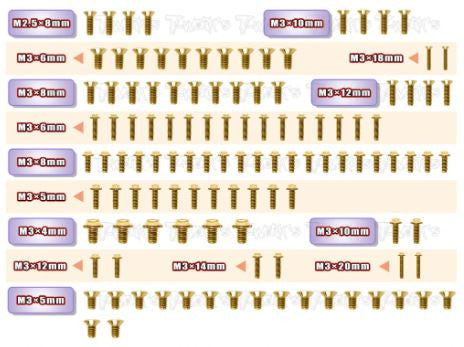 • Kit completo di viti in acciaio nitrurato dorato di T-Work (152 pezzi) RC8B4e GSS-RC8B4E