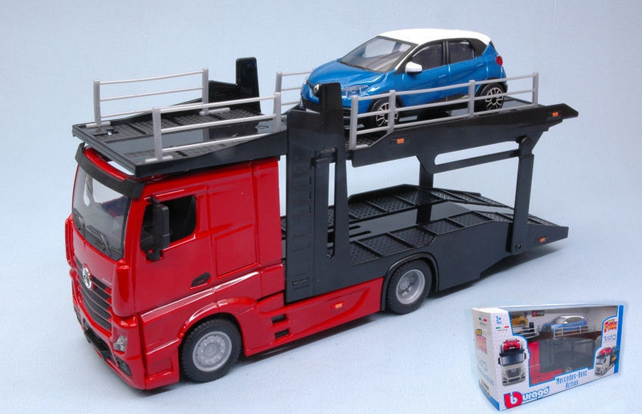 Sale!MODELLINO IN SCALA COMPATIBILE CON MERCEDES ACTROS 2545 MULTICAR CARRIER + VW POLO GTI 2016 GOLD 1:43 BURAGO BU31458